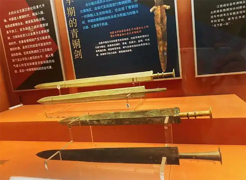 博物馆中,“剑”的展区流淌着一种庄严肃穆之气。这里陈列的绝非单纯的杀人利器,而是华夏精神与礼仪的具象化身。从新石器时代晚期最初以玉琢成、象征威权的古朴玉剑,到春秋战国时期寒光凛冽、工艺登峰造极的青铜与铁剑,每一柄剑都承载着厚重的历史密码。越王勾践剑虽为复制品,其剑格上镶嵌的琉璃与蓝宝石,剑身千年不朽的菱形暗格纹路,无不向今人诉说着两千多年前古越之地令人惊叹的冶金技艺与审美高度。
