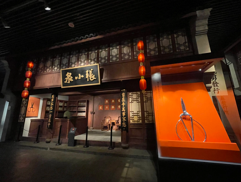 唐宋之际,伴随着经济繁荣与手工业勃兴,剪刀形制逐渐定型,功能也日益细分。展柜中琳琅满目的藏品便是明证:小巧玲珑的绣花剪,是闺阁女子巧手下的诗意;厚重锋利的裁衣剪,是市井裁缝谋生的依凭;独特造型的桑剪,则见证了杭嘉湖平原蚕桑丝织业的繁盛。而其中最为闪耀的名字,无疑是“张小泉”。明末清初发源于杭州的张小泉剪刀,以其“镶钢均匀、钢铁分明、磨工精细、刃口锋利、开合和顺、经久耐用”的七十二道工序锻造出的卓越品质,成为“杭剪”乃至中国剪刀的金字招牌。乾隆年间被列为贡品,更使其声名远播。玻璃展柜里陈列的清代张小泉剪刀,其木柄温润的包浆、钢口历经岁月依旧闪烁的寒光,无声诉说着百年老字号对品质近乎苛刻的坚守。它们剪开的,不仅是布匹与纸张,更是寻常百姓绵长岁月里的生活经纬,是江南文化精细、务实、追求品质的生动注脚。