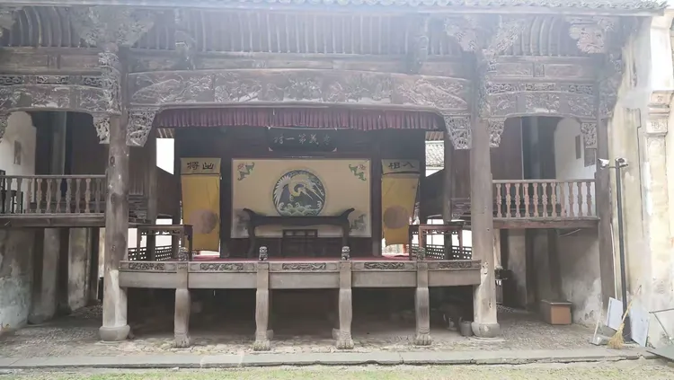 申屠宗祠坐落在村中央,青砖黛瓦,气象庄严。祠堂门前一对圆石墩,小孩经常爬上爬下,磨着噌亮。每年清明、冬至,祠堂便大开中门,族中男子齐聚于此,行祭祀之礼。这幕情景在海盐却是看不到。祠堂里种有多棵老桂树,每逢秋日,桂花盛开,香飘全村。