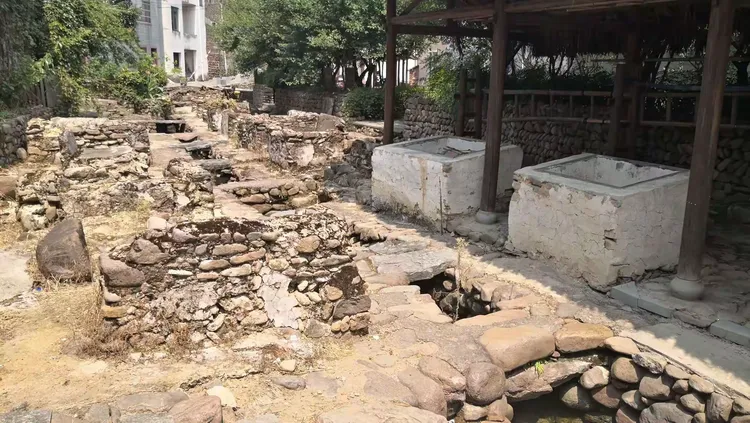 村东头保存着古造纸坊,纸槽青石砌就,虽已闲置,仍可见当年规模。早先荻浦人家会造毛纸,以稻草为原料,手工制成。我小时候常见人造纸,竹浆在槽中荡漾,用竹帘轻轻一舀,便是一张纸的雏形。如今槽底积了泥土,长出青草,唯有石壁上的水痕,还记录着当年的忙碌。